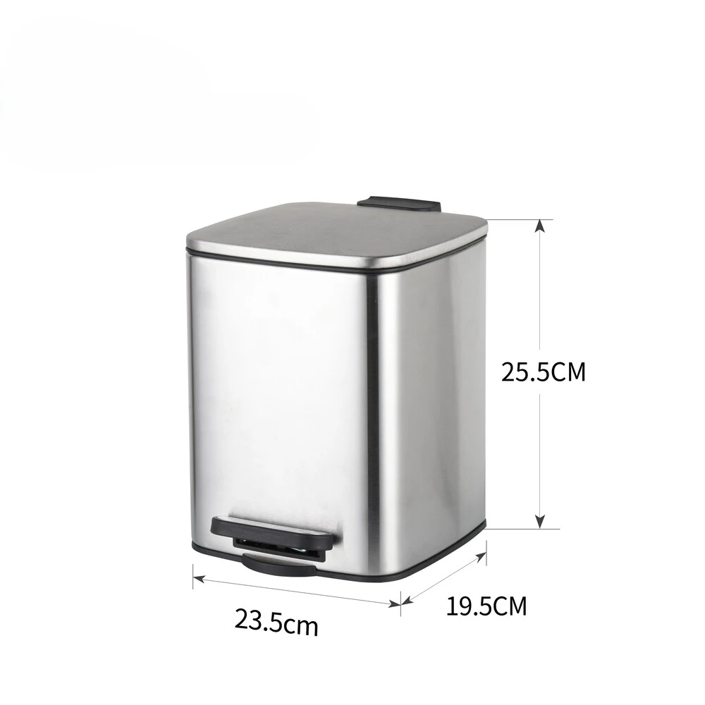 Відро для сміття з плавним закриттям квадратне Zerix Kubix-TC0106 SS Color 6л колір нержавійка (ZX58