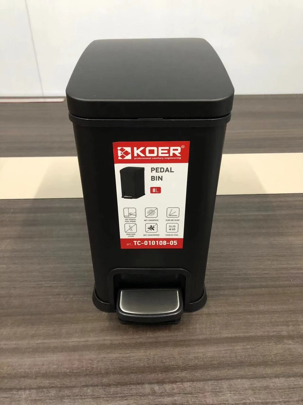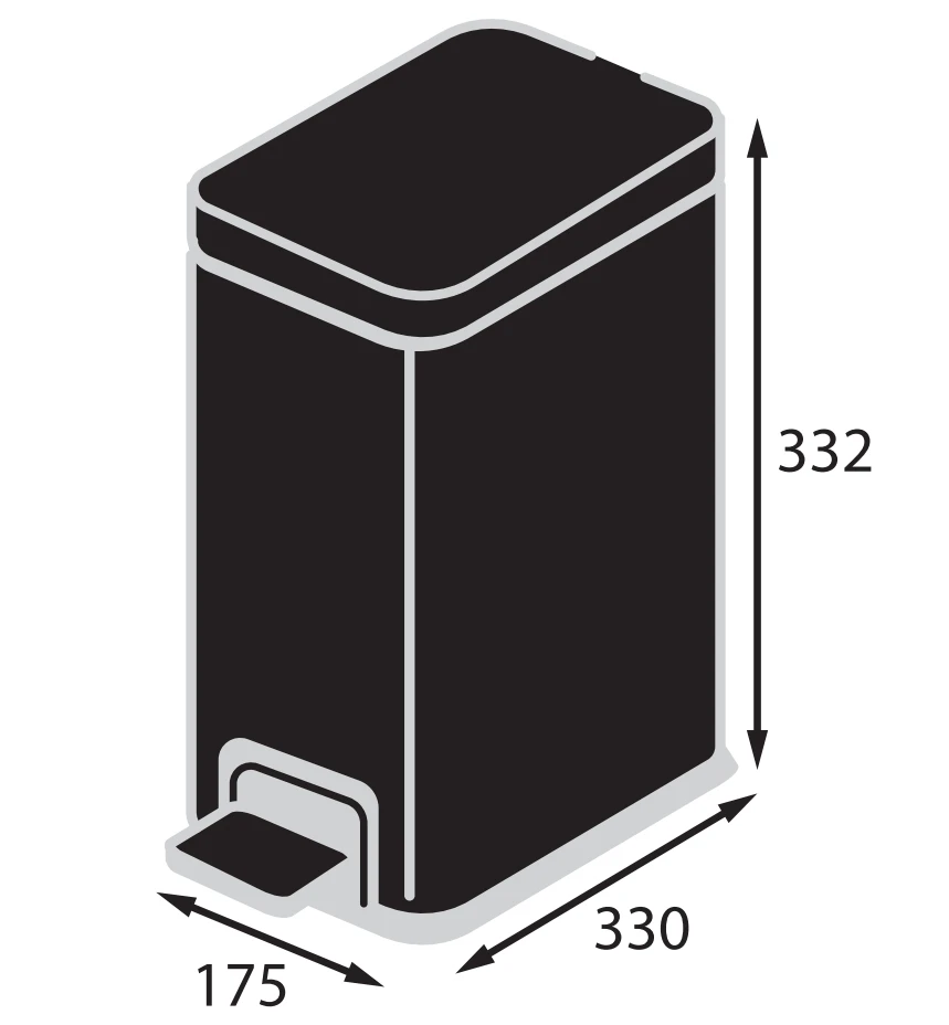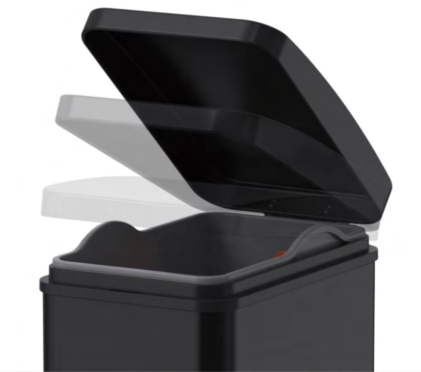 Відро для сміття з плавним закриттям прямокутне Koer TC-010108-05 8 л колір чорний (KR5593)
