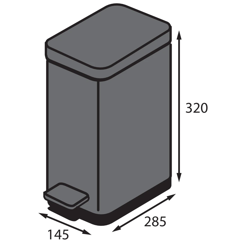 Відро для сміття з плавним закриттям прямокутне Koer TC-010206-07 6 л колір сірий (KR5596)