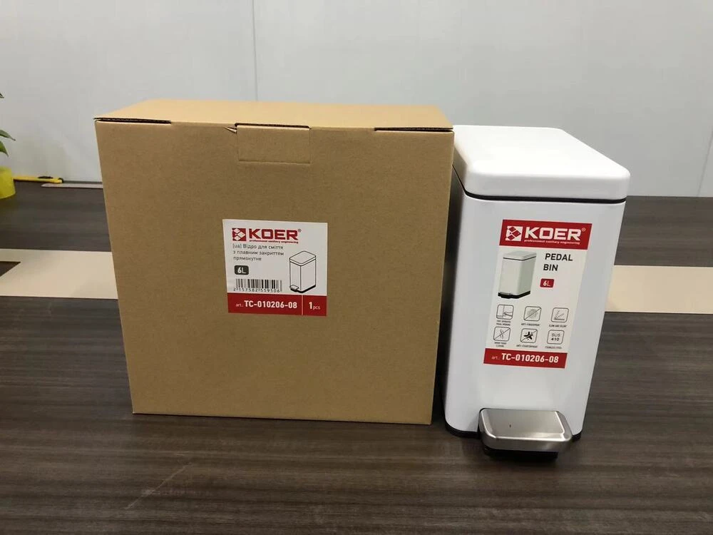 Відро для сміття з плавним закриттям прямокутне Koer TC-010206-08 6 л колір білий (KR5595)