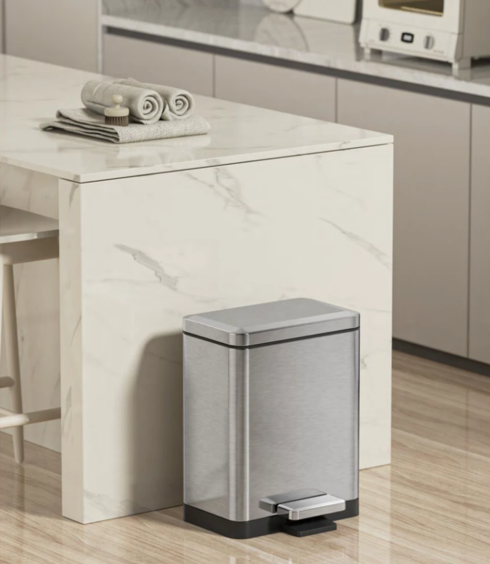 Відро для сміття з плавним закриттям прямокутне Koer TC-010306-02 6 л колір нержавійка (KR5600)