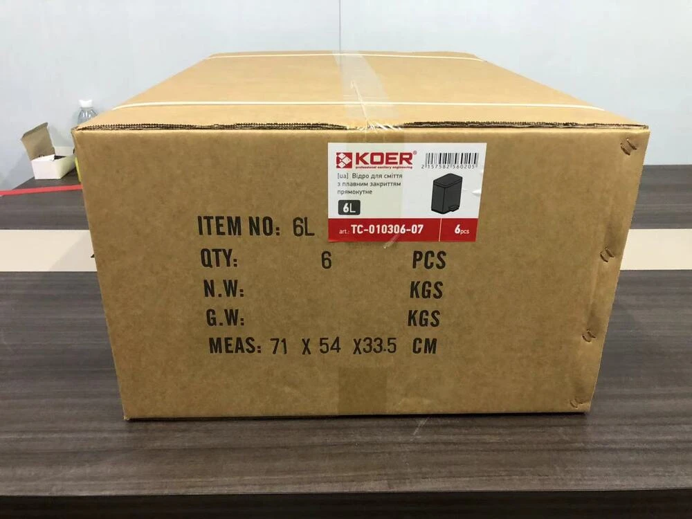 Відро для сміття з плавним закриттям прямокутне Koer TC-010306-07 6 л колір графіт (KR5602)