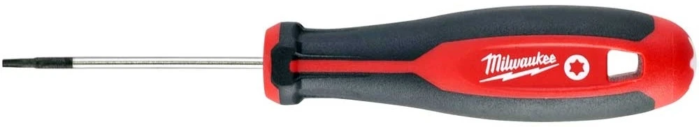 Milwaukee магнітна викрутка T8x65 — ручний інструмент із Torx-наконечником TX8 для точних операцій загвинчування й відкручування в машинобудуванні, ремонті та монтажі. Магнітний наконечник утримує металеві метизи на місці під час роботи для зручності. Тригранна ергономічна рукоятка забезпечує стабільний хват і ефективну передачу зусилля. Довжина 65 мм робочої частини дозволяє працювати у обмежених просторах.