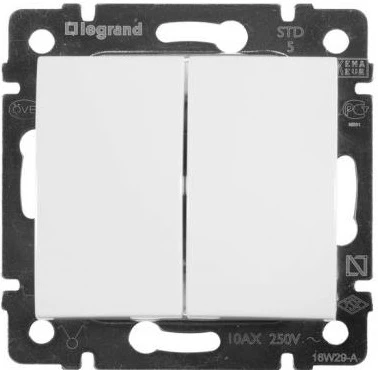 Вимикач 2-клавішний Legrand Valena Classic, 10АХ, 250V, автоматичні клеми, білий