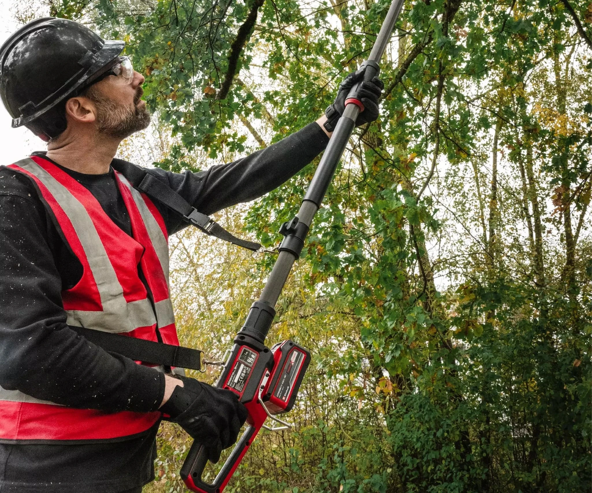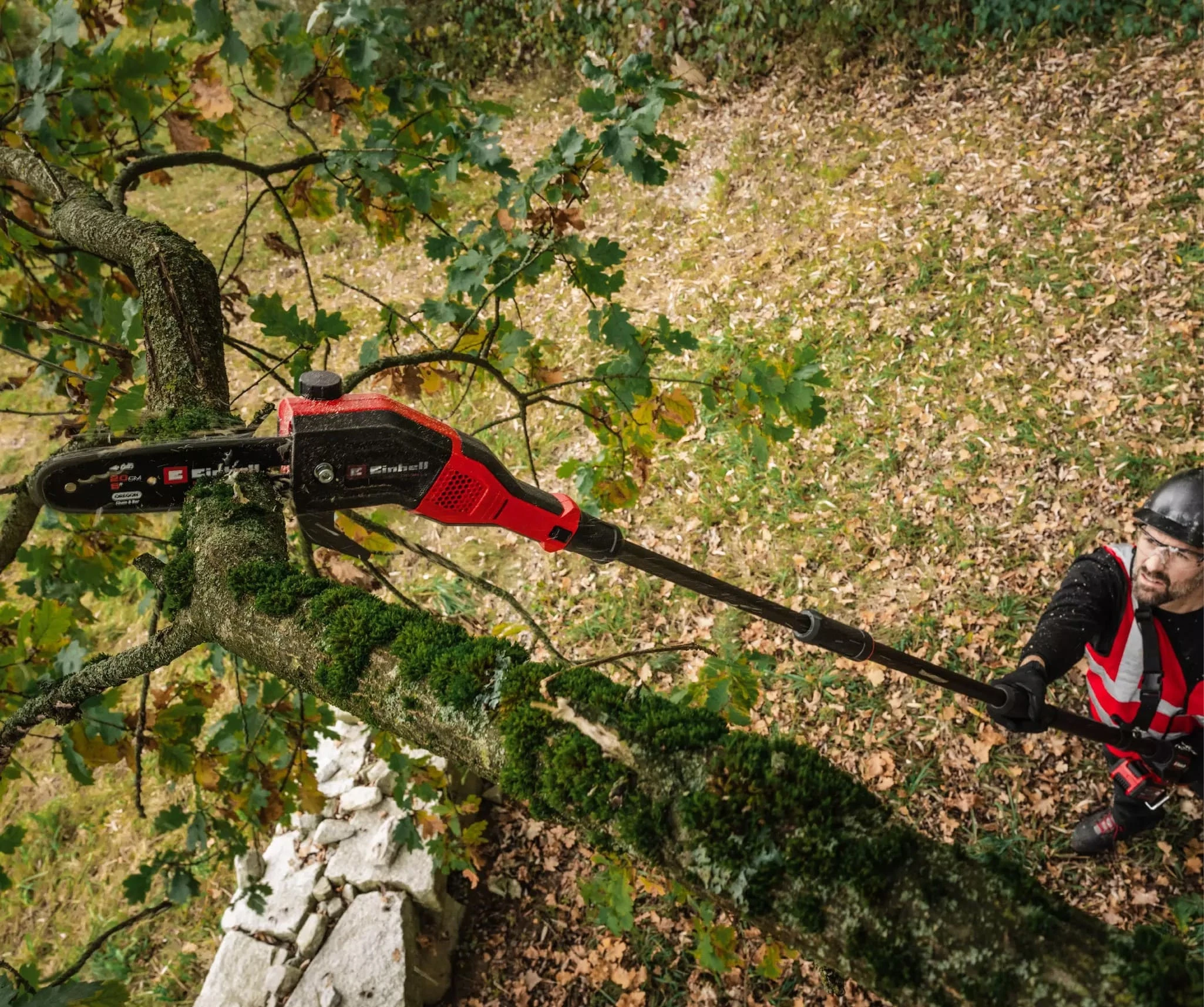 Акумуляторний висоторіз Einhell Professional GP-LC 18/20 Li T BL-Solo (3410971) — телескопічний інструмент із безщітковим двигуном, шиною 20 см та швидкістю ланцюга 7 м/с для обрізки гілок на висоті. Довжина штанги регулюється від 174 до 250 см. Поставляється без акумулятора та зарядного пристрою.
