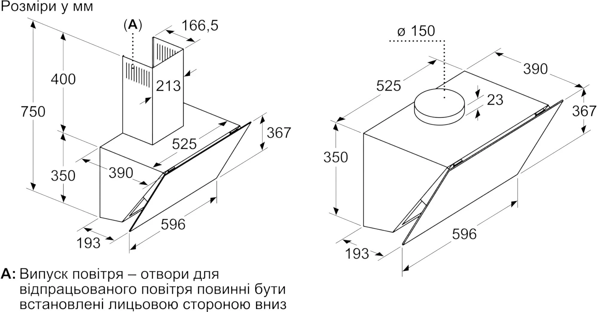 - Діаметр випускного отвору (мм) 150