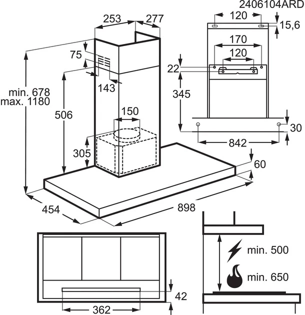 Витяжка Electrolux купольна, 90см, 730м.куб/год., Hob2Hood, нерж