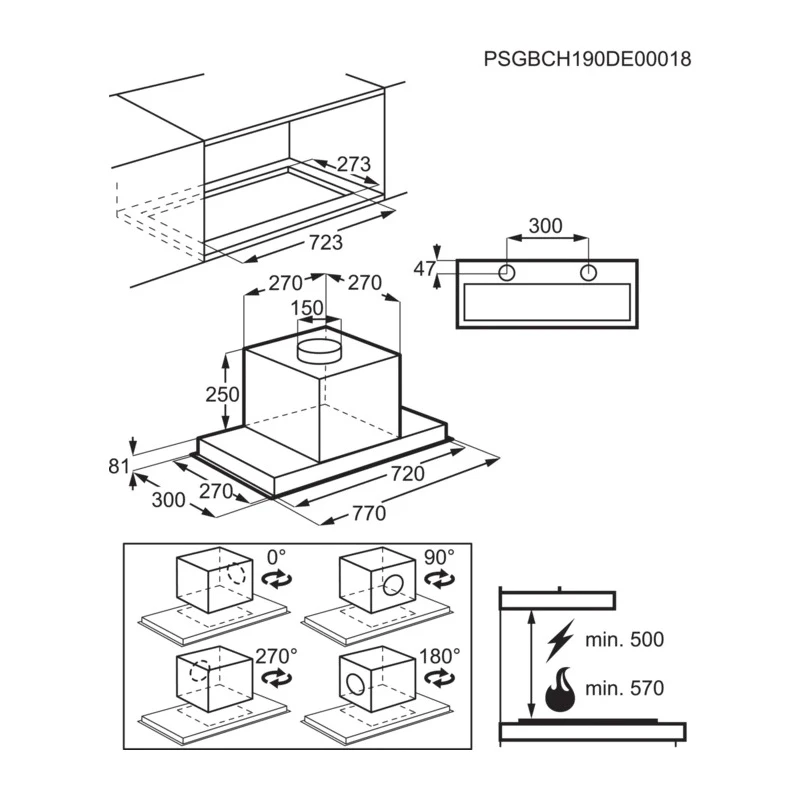 Витяжка Electrolux вбудована, 77см, 700м.куб/год., пульт, Hob2Hood, нерж