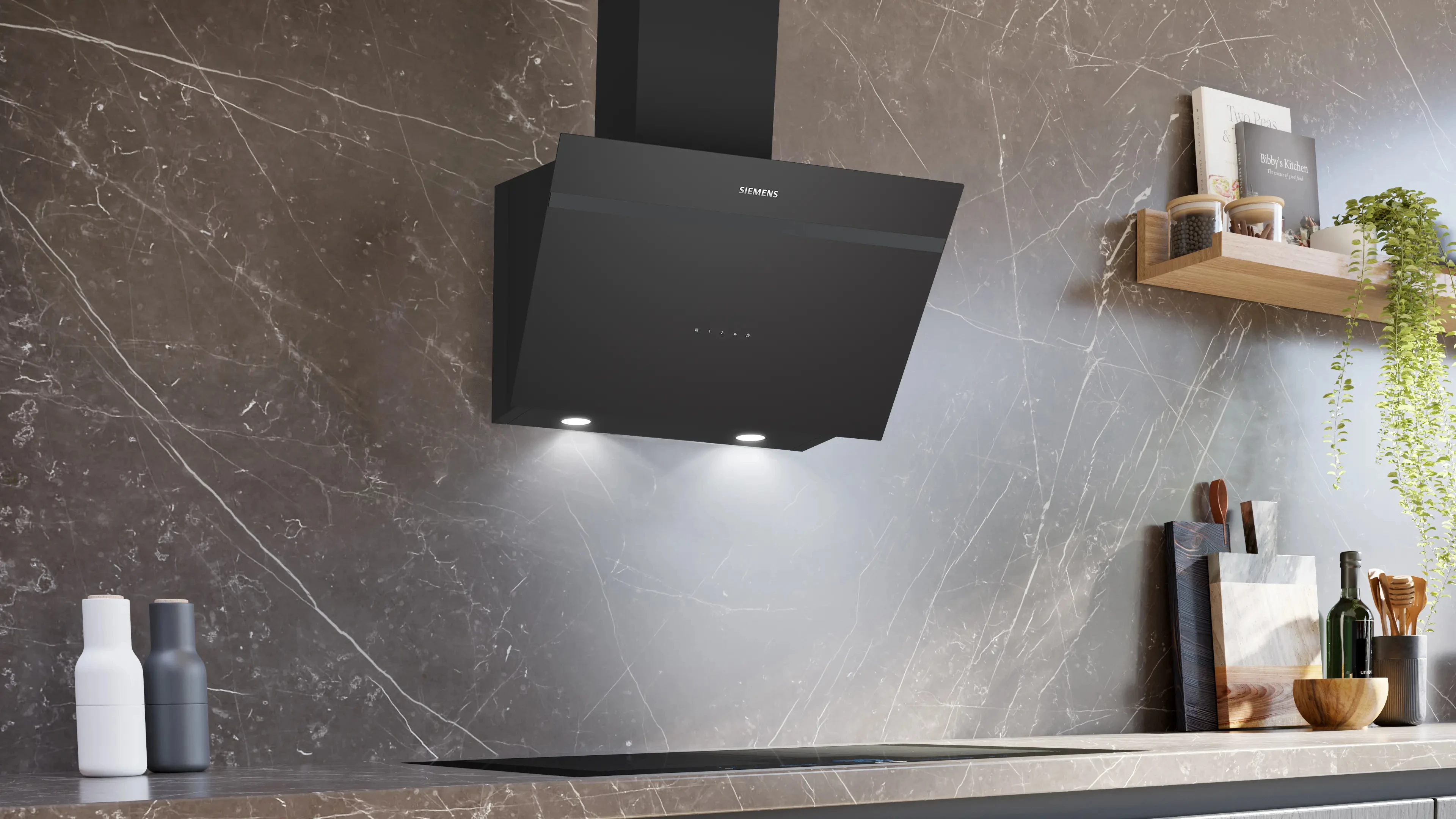 Витяжка Siemens LC66KPJ60T — похила модель шириною 60 см у чорному кольорі з продуктивністю до 700 м³/год. Забезпечує ефективне очищення повітря на кухні та сучасний вигляд інтер’єру.