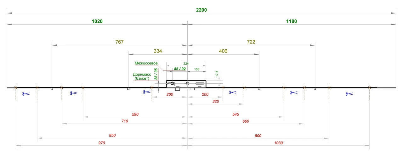 - Відстань від торця до центру ригелів 85 / 92 / 105 мм