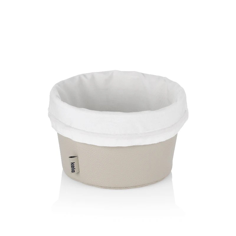 Хлібниця KELA Grana для хліба та булочок виготовлена зі штучної шкіри з бавовняним мішечком усередині. Цей мішок можна прати при 30°C, і його можна затягнути шнурком. Мішечок також захищає випічку від висихання.