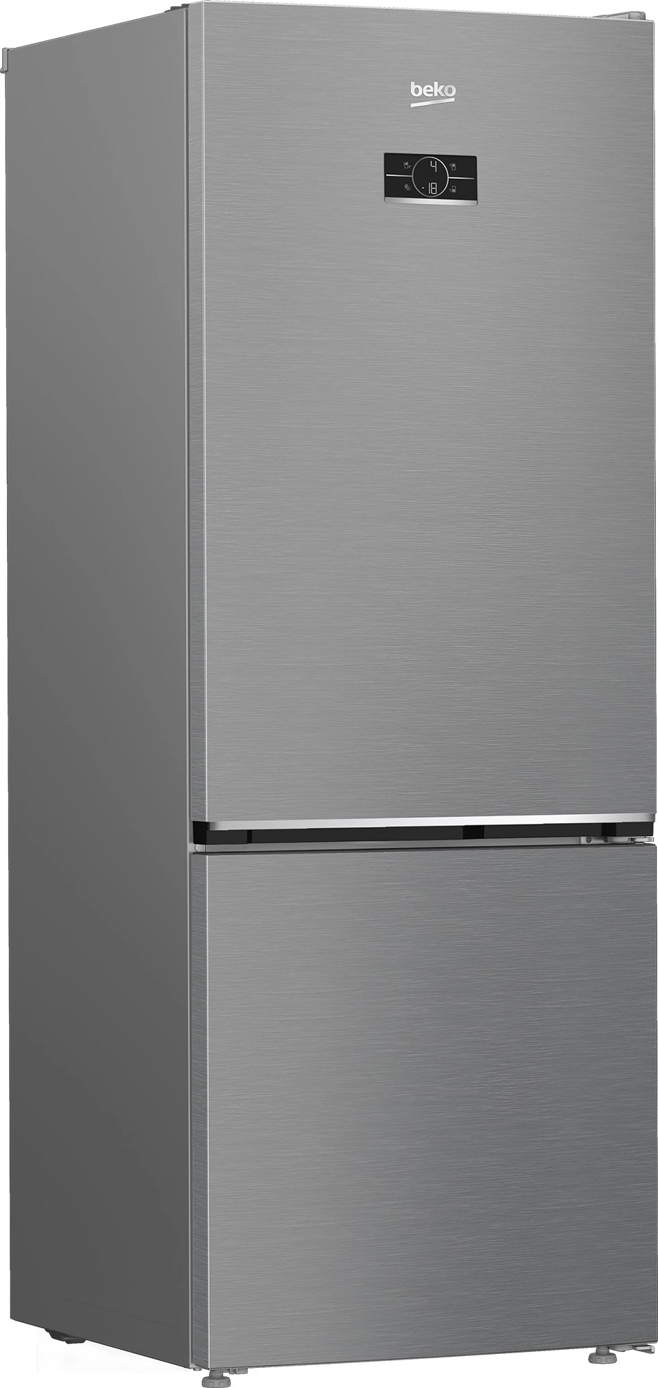 Холодильник Beko з нижньою морозильною камерою має корисний об’єм 490 л та працює за системою NeoFrost з окремими контурами охолодження. Ящик для овочів і фруктів з технологією HarvestFresh відтворює добовий цикл освітлення, а Aeroflow допомагає рівномірно розподіляти холод по всій камері. Інверторний компресор ProSmart забезпечує стабільну роботу з рівнем шуму 35 дБ. Модель оснащена NoFrost у морозильній камері, режимом «Відпустка», LED-підсвіткою та дверцятами SmoothFit, які не потребують додаткового простору збоку.