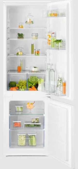 Вбудований холодильник Electrolux LNS3LE18S має нижнє розташування морозильної камери та розсувне кріплення фасаду. Корисний об'єм становить 267 л (195 л холодильна камера та 72 л морозильна). Технологія ColdSense відновлює температуру після відкривання дверей, LowFrost зменшує утворення інею в морозильній камері. Функція Action Freeze забезпечує швидке заморожування продуктів. Інверторний компресор характеризується тихою роботою, холодильне відділення розморожується автоматично.
