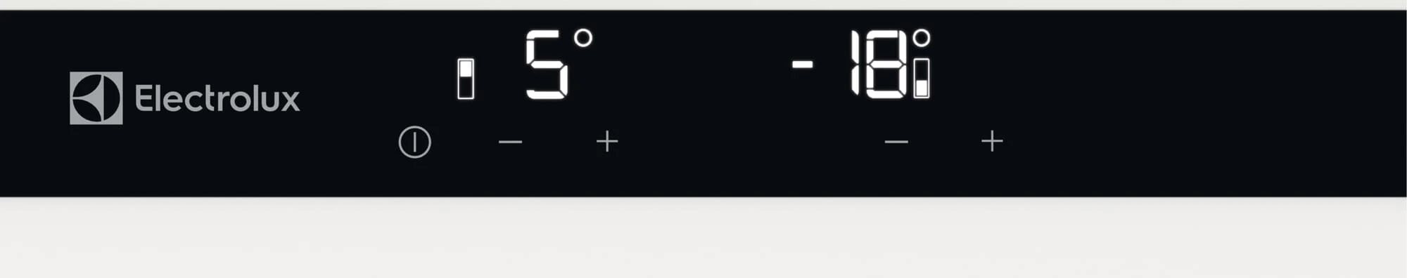 Вбудований холодильник Electrolux з нижнім розташуванням морозильної камери забезпечує стабільне охолодження та контроль вологості продуктів. Система TwinTech® No Frost використовує окремі контури для холодильного та морозильного відділень і зменшує втрату соковитості під час зберігання. Технологія DynamicAir вирівнює температуру в камері завдяки циркуляції повітря. Сенсорна електронна панель забезпечує швидкий доступ до налаштувань температури та режимів.
