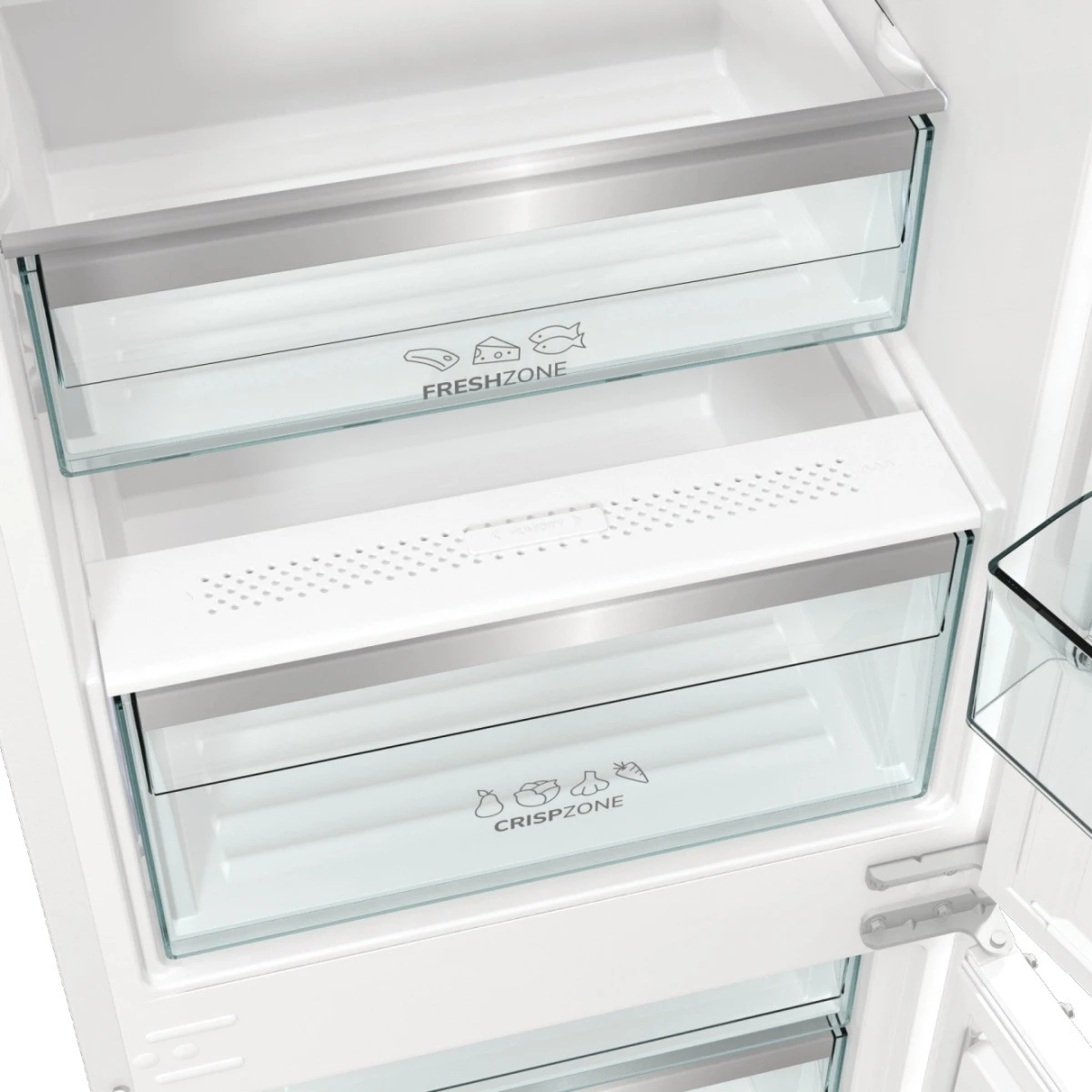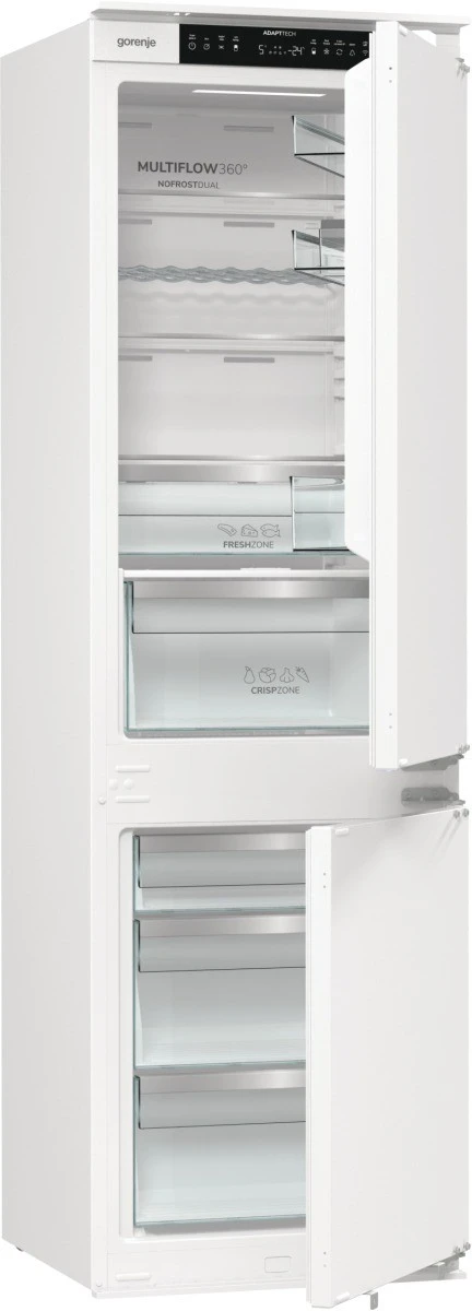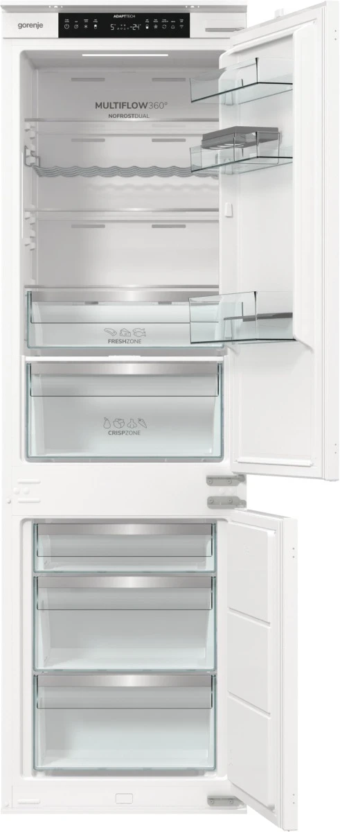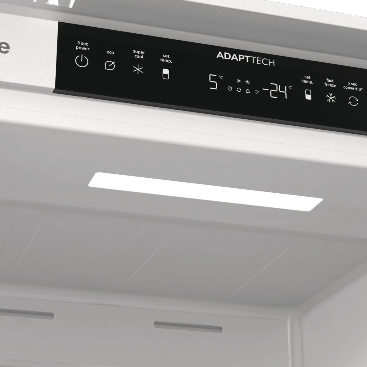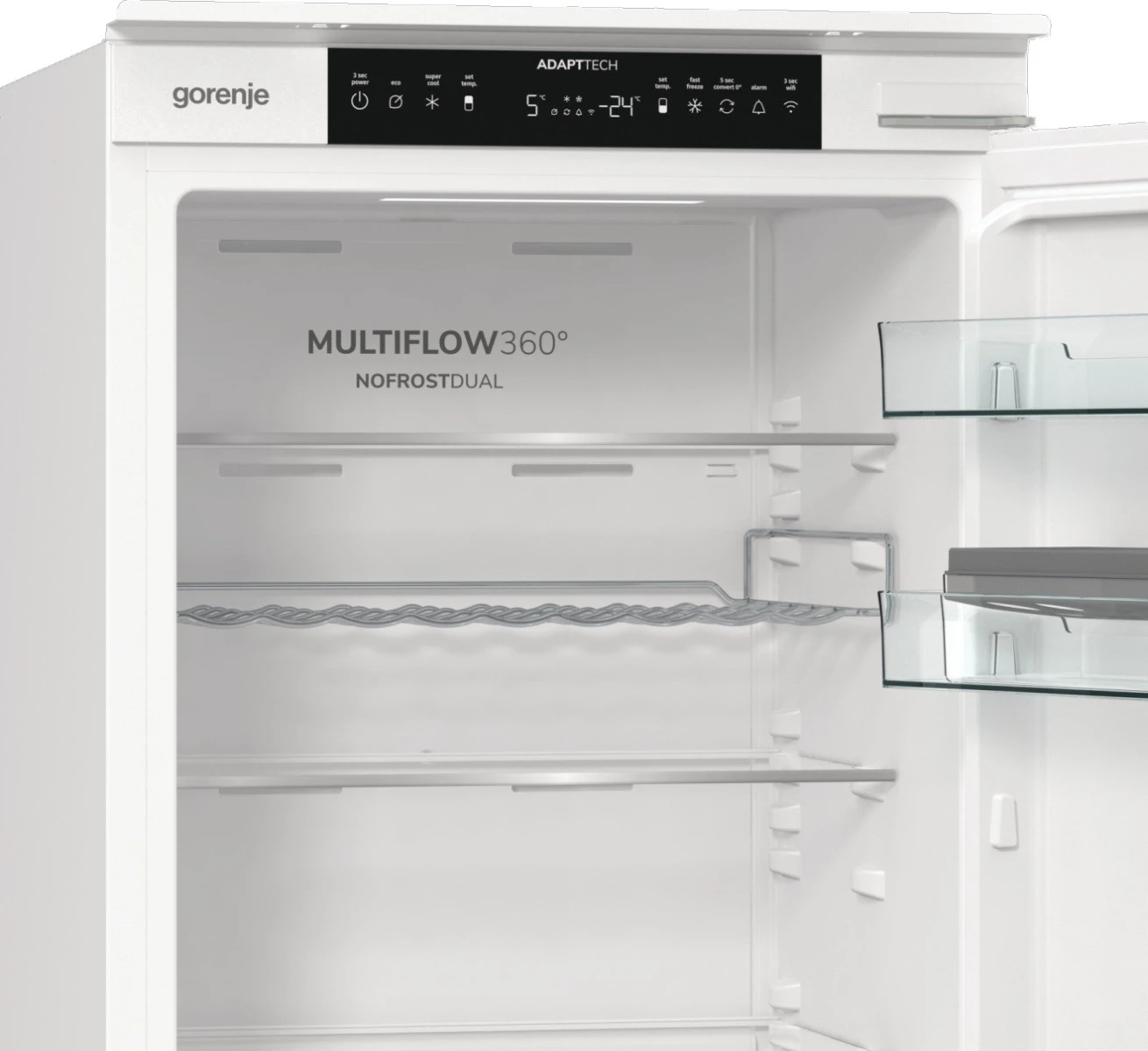 Вбудований холодильник Gorenje NRKI517E61WF із нижньою морозильною камерою має корисний об’єм 252 л та висоту 177 см. Оснащений системою NoFrost Plus, циркуляцією Multi Air Flow та адаптивним охолодженням AdaptTech. Передбачені зона свіжості, функція ConvertActive і електронне керування з LED-дисплеєм. Підтримується вбудоване Wi-Fi з’єднання.