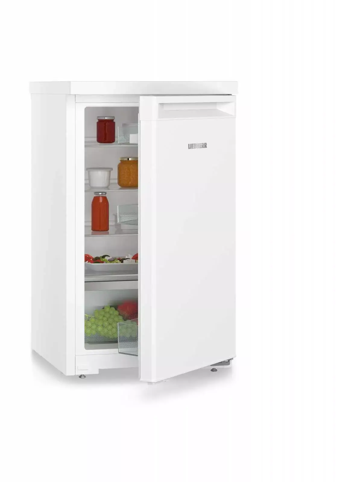 Liebherr RE 1200 – це компактний холодильник під стільницю об'ємом 110 літрів. Завдяки функції SuperCool, він швидко охолоджує нові продукти, підтримуючи оптимальну температуру. Світлодіодне бокове освітлення та скляні полиці забезпечують чудову видимість вмісту, навіть при повному завантаженні. Управління температурою здійснюється через TouchControl, що робить його зручним у використанні. Особливості, як-от DoorStop для запобігання запахам та міцна стільниця, що витримує подряпини, додають практичності.