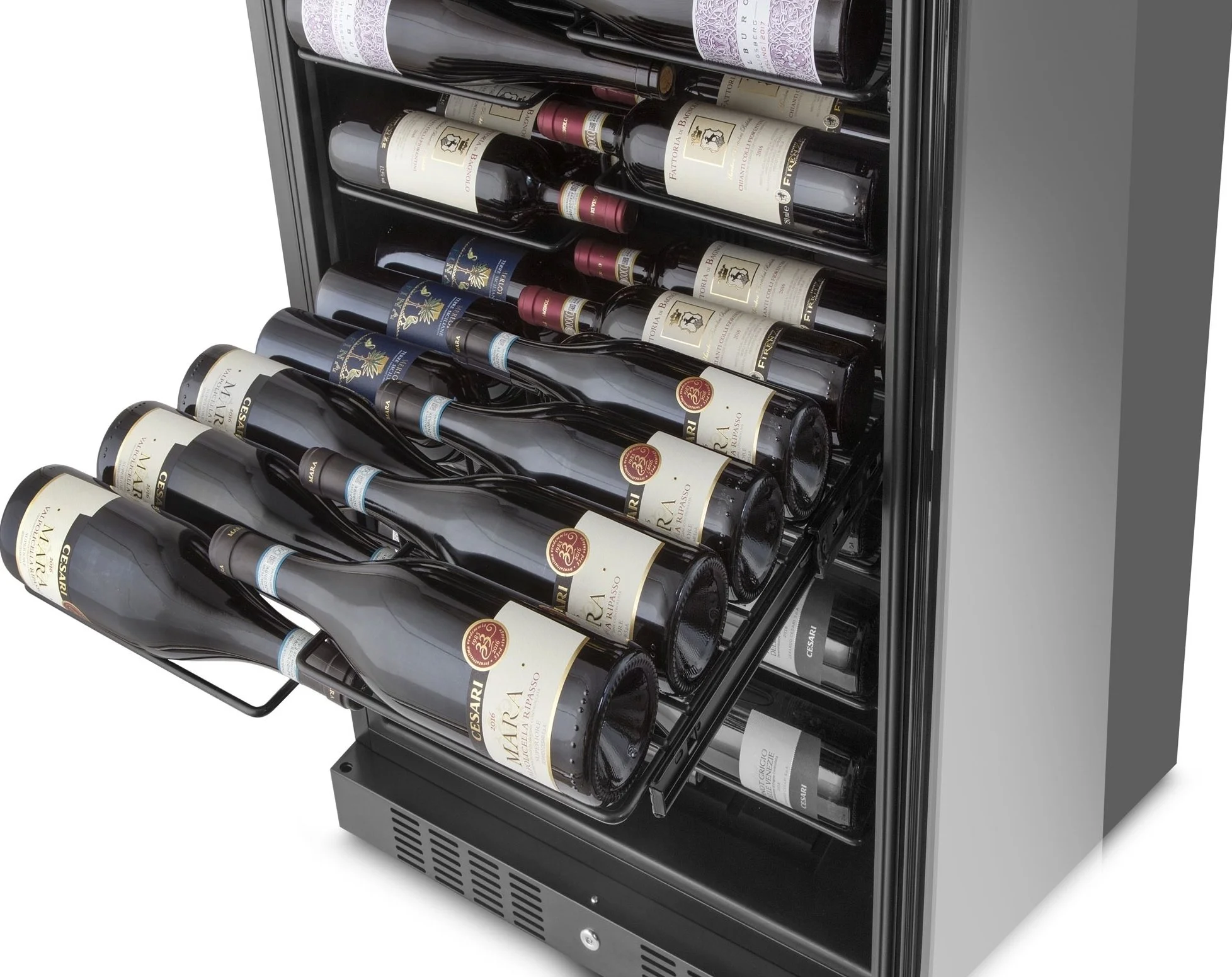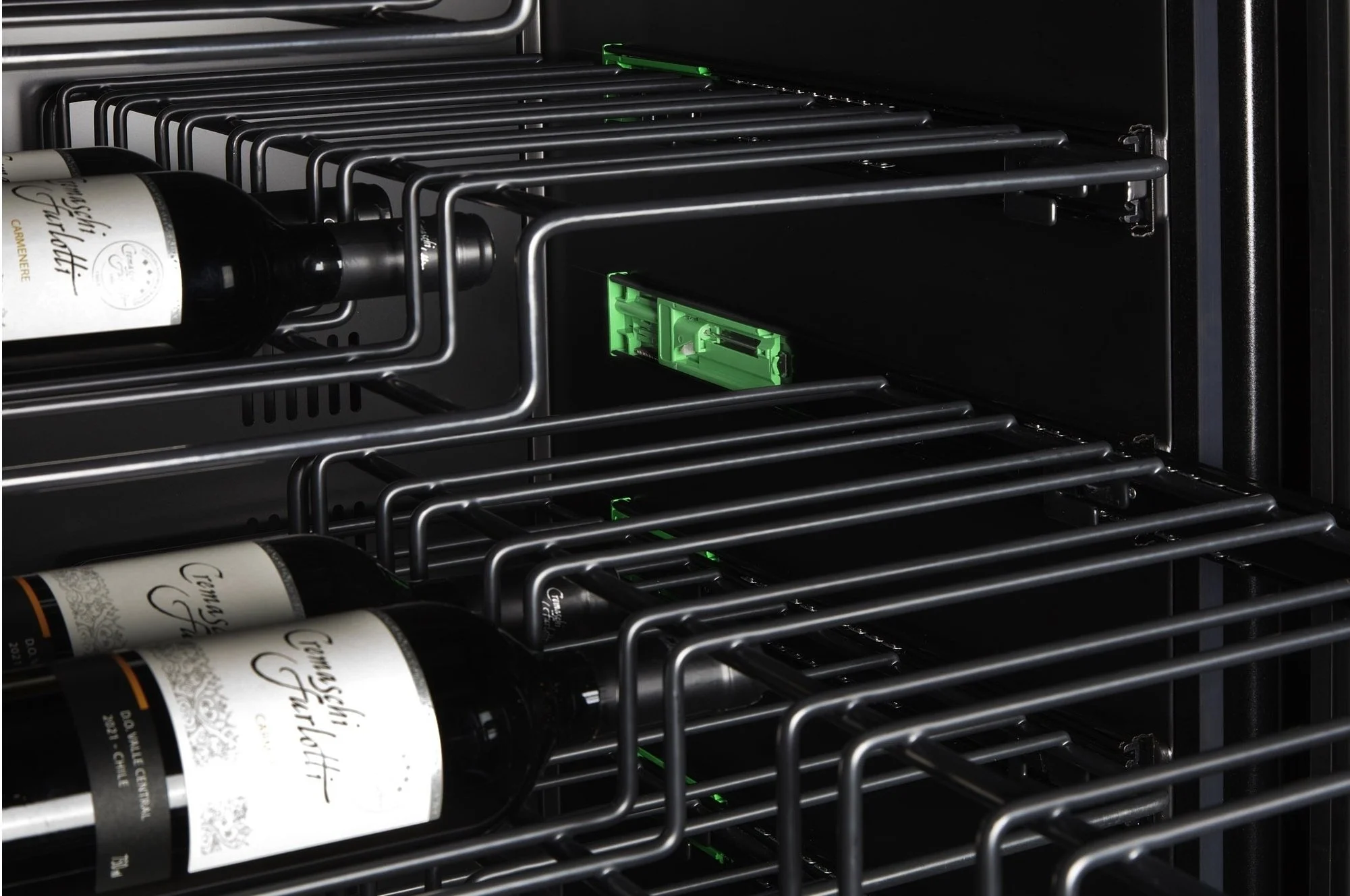 - Місткість до 143 пляшок — ідеально для великих винних колекцій
