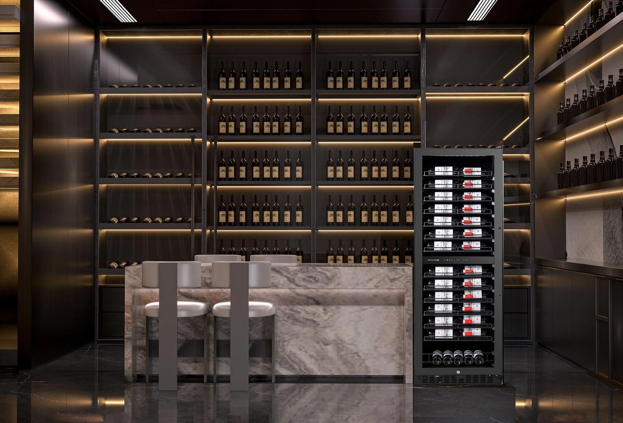 Холодильник Philco для вина,176x60x68, холод.відд.-418л, зон - 2, бут-131, диспл, підсвітка, чорний