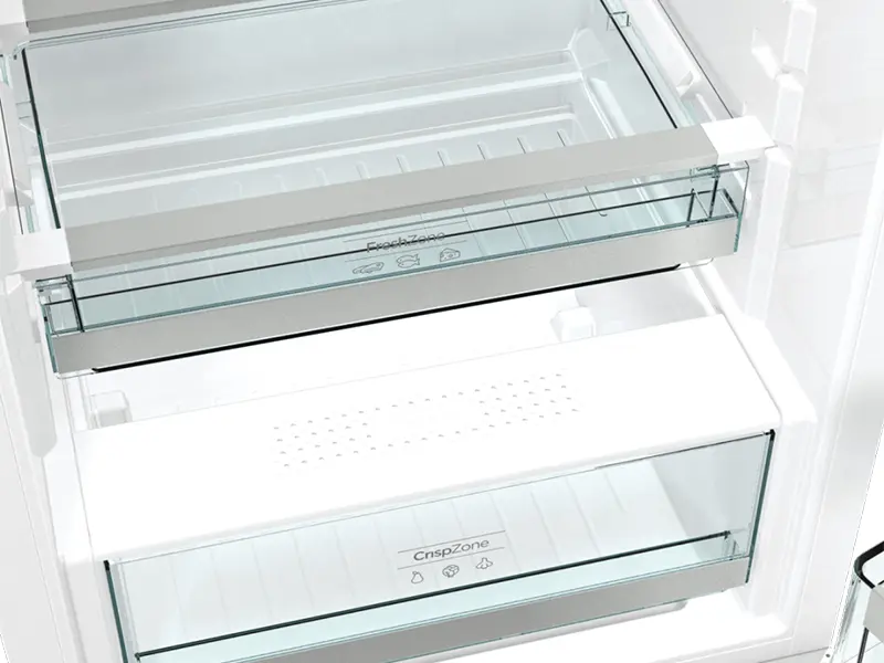 Інтенсивна циркуляція прохолодного повітря у морозильному відділенні знижує рівень вологості та запобігає накопиченню інею на продуктах та льоду на стінках морозильної камери. Він забезпечує ідеальні умови для зберігання продуктів у холодильному відділенні. Забезпечується оптимальний контроль охолодження та заморозки, оскільки це два окремих процеси у двох окремих частях пристрою: Розморожування морозильної камери більше не потрібне. Заморожені продукти не комкаються. Висока якість заморожених продуктів. Найкращий огляд вмісту. Більше місця. Запахи не змішуються між морозильною та холодильною камерами. Продукти не висихають та залишаються свіжими.