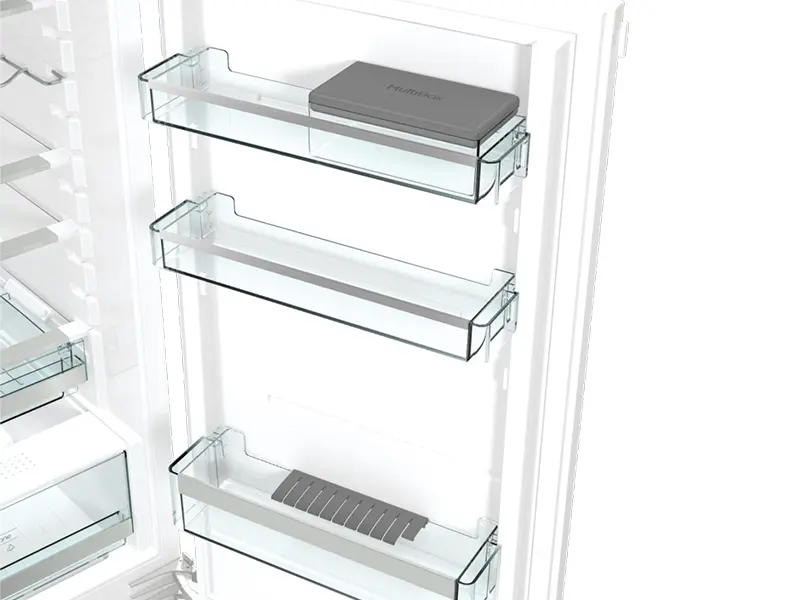 Ці полиці з цільного скла можна легко регулювати, вставляти або знімати, що дозволяє вільно адаптувати внутрішній простір холодильника до ваших індивідуальних потреб. Загартоване скло дуже міцне та надійно утримує навіть важкі предмети.