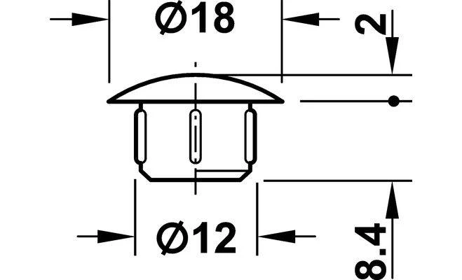 Заглушка для вдавлювання у глухий отвір діаметром - 12 мм, виготовлена з пластмаси коричневого кольору. Розміри заглушки: діаметр голівки 18 мм, товщина голівки 2 мм, діаметр ніжки 12 мм, висота ніжки 8,4 мм.