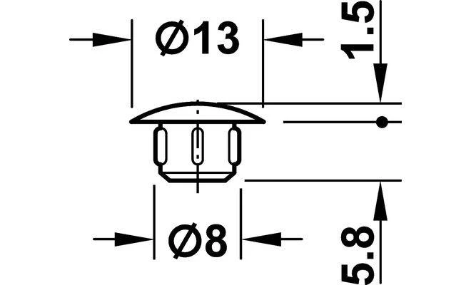Заглушка для вдавлювання у глухий отвір діаметром - 8 мм, виготовлена з пластмаси чорного кольору. Розміри заглушки: діаметр голівки 13 мм, товщина голівки 1,5 мм, діаметр ніжки 8 мм, висота ніжки 6,3 мм.
