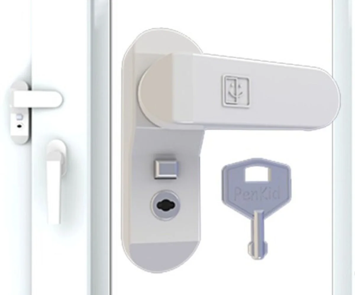 Замок безпеки Penkid PL010722 8019 — просте й ефективне рішення для контролю відкривання дверей або вікон. Підходить для приміщень, де потрібна додаткова безпека та обмеження доступу без складного встановлення і без ключа.