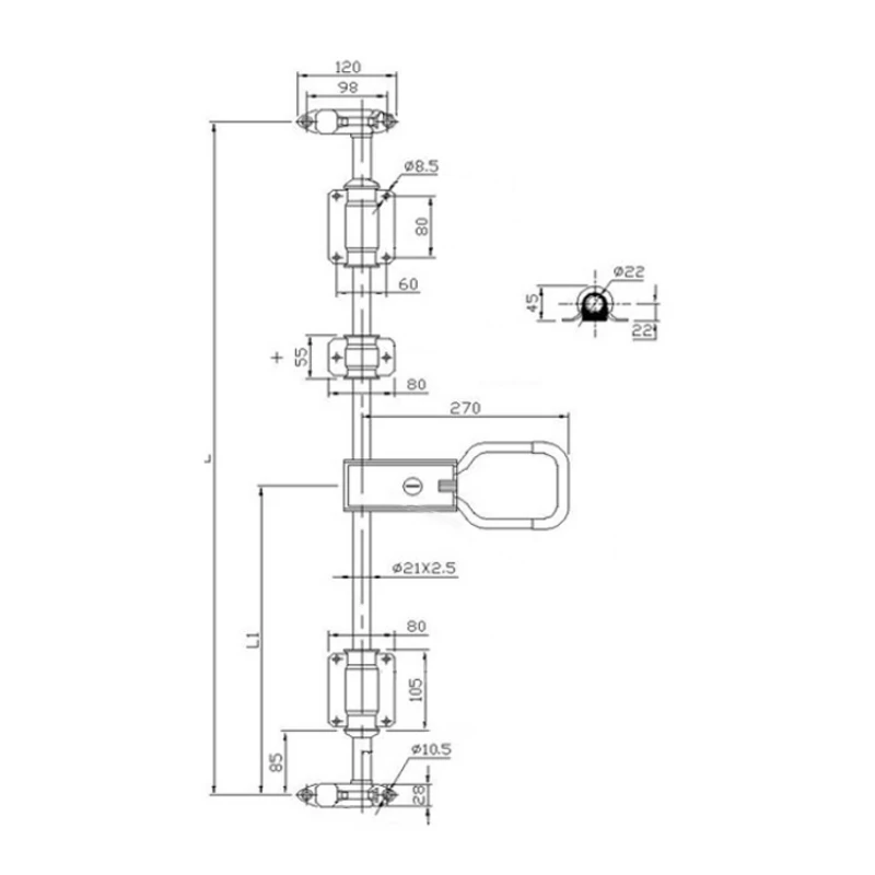 Оцинкований замок для напівпричепів зі штоком 22 мм — це надійне рішення для захисту дверей від випадкового відкриття та корозії. Простий у монтажі, довговічний і зручний у щоденному використанні.
