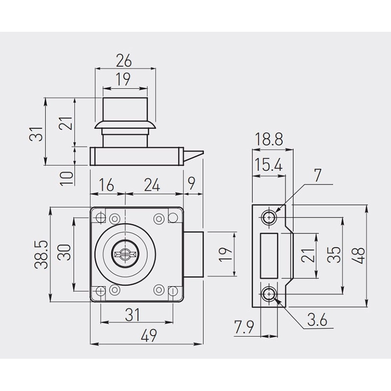 - Габарити лицьової частини замка 18,8х48 мм