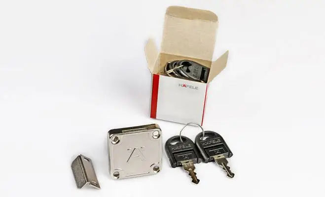 Модель має універсальну систему кріплення під шуруп або гайку. Нікельоване покриття не лише додає привабливого вигляду, а й забезпечує антикорозійний захист. Замок підходить для використання як окремо, так і у складі централізованих систем замикання Hafele.
