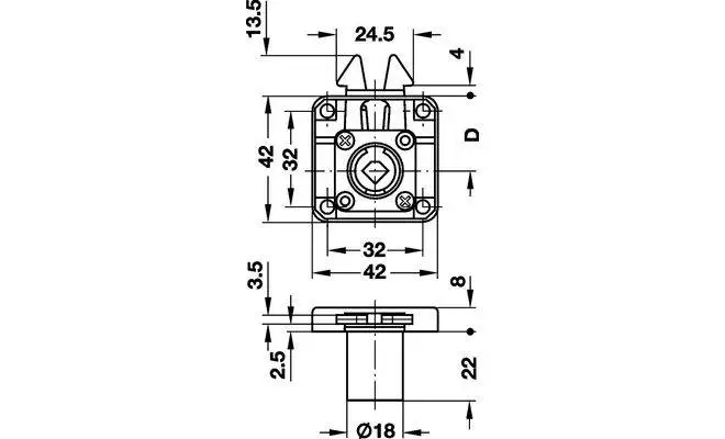 - Відстані по горизонталі до монтажних отворів 44 мм