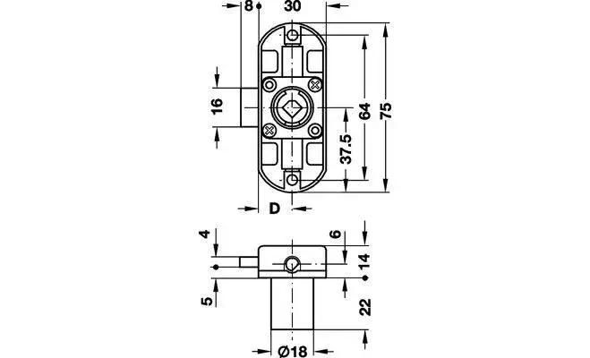 - Відстань від центру квадрата до нижнього краю корпусу 37,5 мм