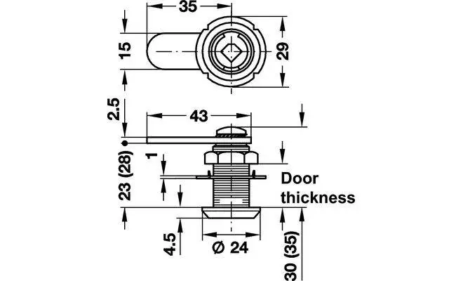 Замок Hafele SYMO 3000 має діаметр корпусу 17 мм і сумісний із усіма стандартними циліндрами SYMO. Важільна конструкція забезпечує рівномірне навантаження на механізм, що підвищує довговічність і плавність роботи. Підтримує встановлення у фасади різної товщини, забезпечуючи щільне прилягання.