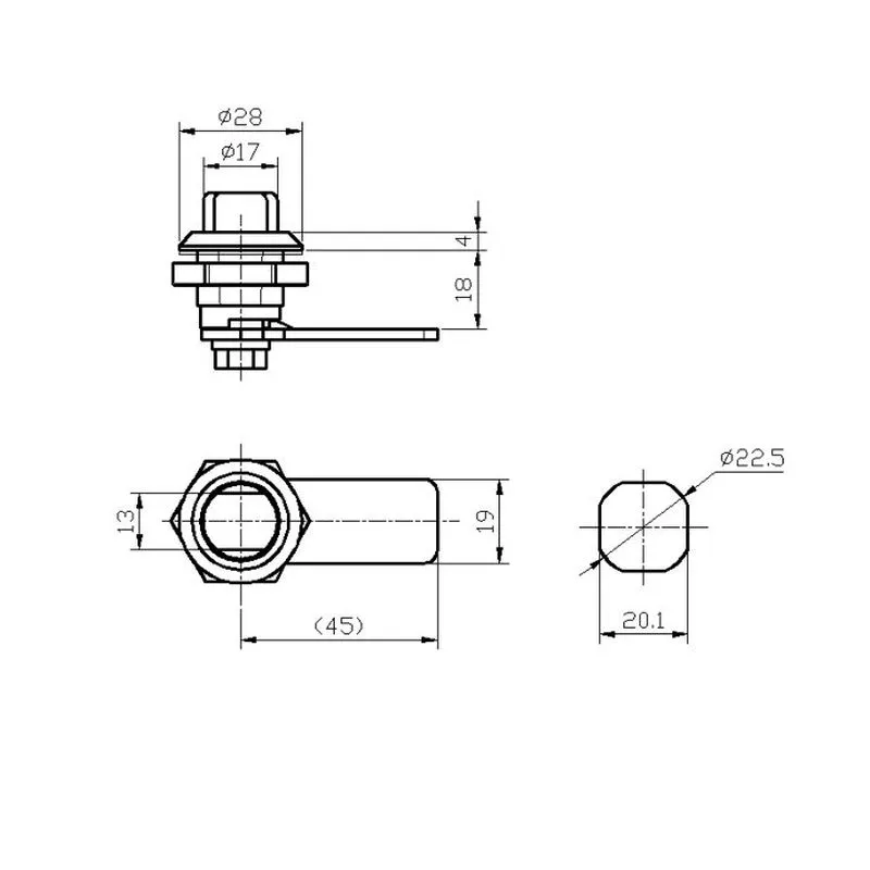 - Габарити лицьової частини замка 28х4 мм