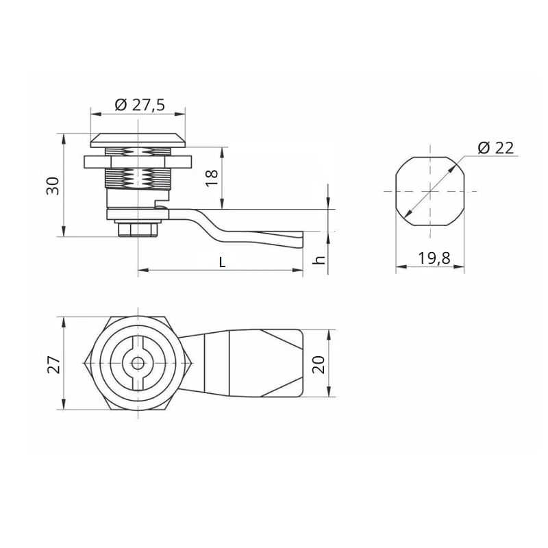 Перед монтажем перевірте діаметр отвору (22 мм) і товщину панелі. Замок встановлюється з внутрішнього боку корпусу за допомогою фіксуючої гайки. Для роботи в умовах підвищеної вологості рекомендується додаткове ущільнення. Не змащуйте механізм маслом — використовуйте силіконову змазку або сухий спрей. Зберігайте унікальні ключі окремо для безпечного користування.