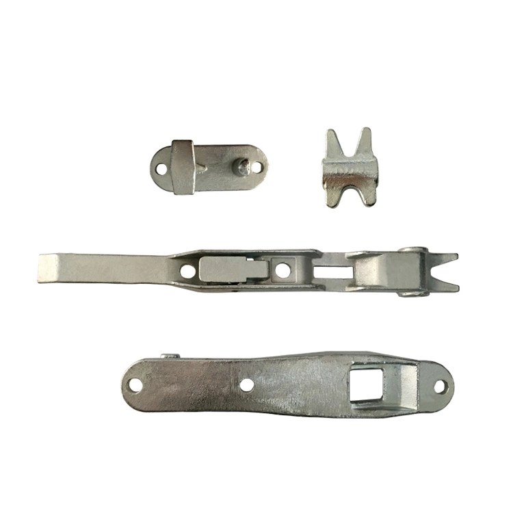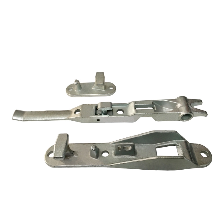 Замок запірний для напівпричепів у цинковому покритті — це міцний механізм, призначений для фіксації дверей фургонів, контейнерів та напівпричепів під час транспортування. Виготовлений зі сталі з оцинкованим захистом від корозії, має діаметр штока 16/18 мм, що забезпечує надійне замикання навіть при вібраційних навантаженнях. Конструкція складається з корпусу, важеля та фіксувального ригеля, які працюють у парі для щільного прилягання дверей. Механізм простий у користуванні — відкривання і закривання здійснюється поворотом важеля, що забезпечує стабільну фіксацію без додаткових інструментів.