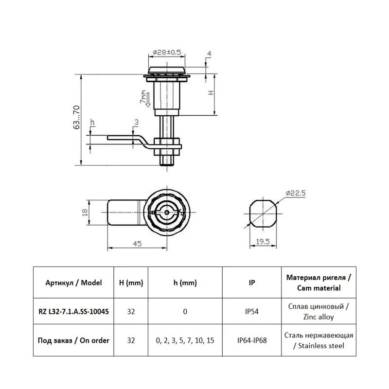Замок під ключ з подвійною борідкою компресійний RZ L32-7.1.A.SS-10045 Металік