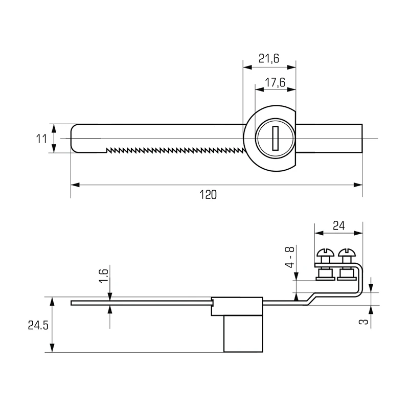 - Довжина рейки 120 мм — забезпечує надійну фіксацію дверцят.