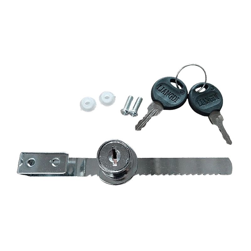 Замок-пила сумісний із вітринними системами, профілями для скла, декоративними ручками та іншими елементами меблевої фурнітури. Підходить для монтажу в алюмінієві або сталеві рамні конструкції та поєднується з ущільнювальними гумовими вставками.