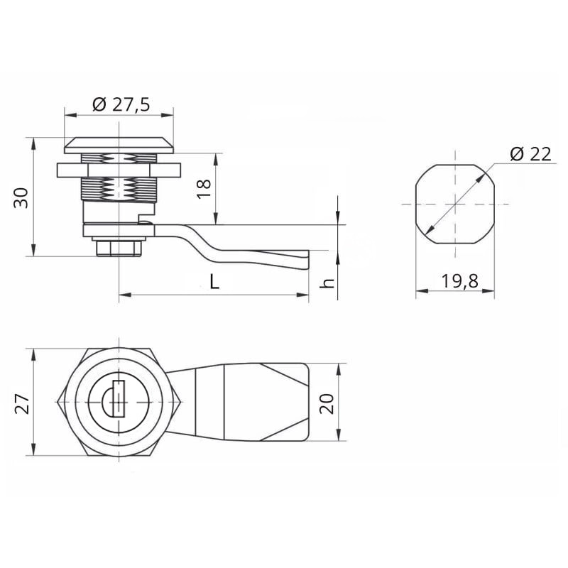 - Діаметр монтажного отвору під корпус замка 19,8 мм
