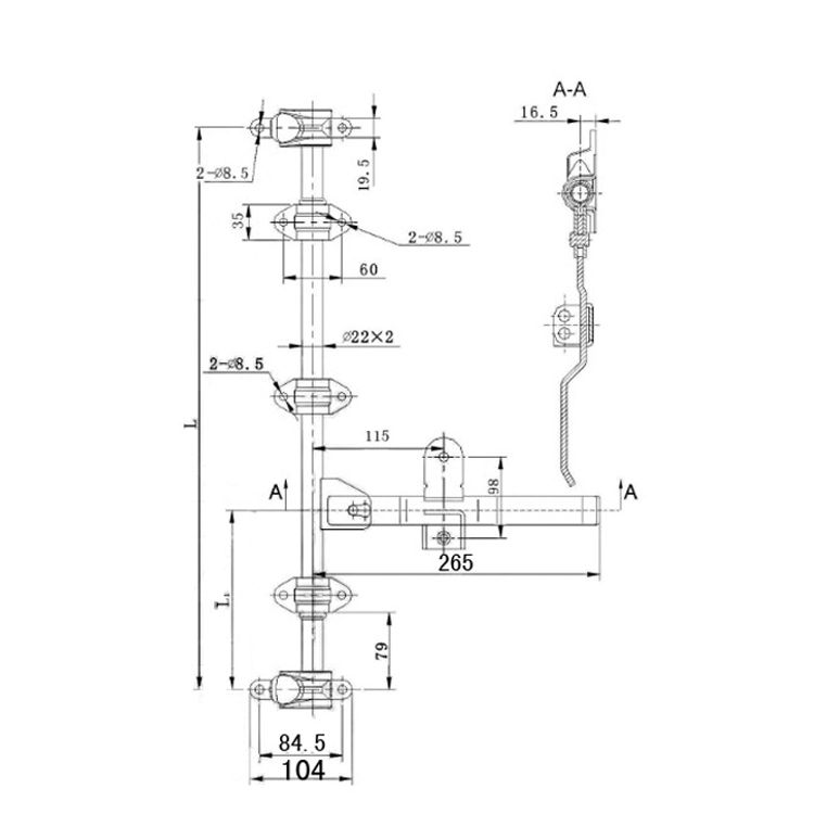 - Довжина язичка / ригеля 265 мм