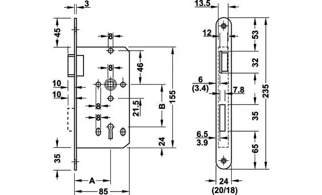 - Габарити лицьової частини замка 24х235 мм