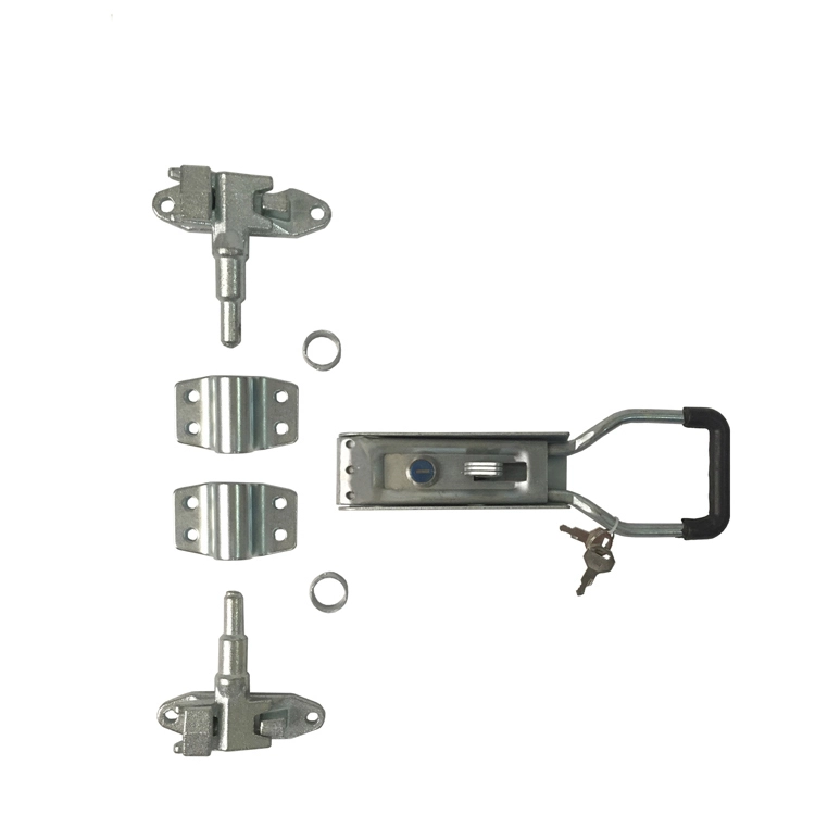 Запірний замок із цинковим покриттям — це міцний і довговічний елемент фурнітури для фіксації дверей напівпричепів, фургонів і контейнерів зі штоком діаметром 22 мм. Модель має посилену конструкцію корпусу, що витримує значні механічні та вібраційні навантаження під час руху транспорту. Оцинкована поверхня забезпечує захист від корозії, вологості та хімічних впливів, продовжуючи термін експлуатації. Замок призначений для щільного та стабільного замикання дверей, запобігаючи їх випадковому відкриттю на дорозі.
