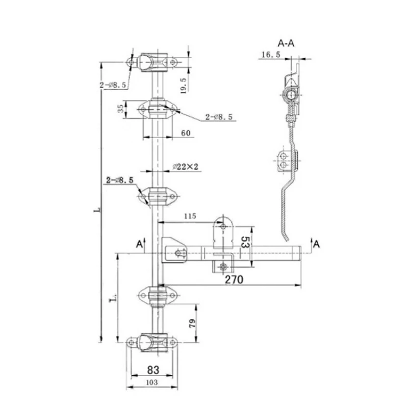Цей тип замка використовується для фіксації дверей на важких напівпричепах, фурах, контейнерах та промислових шафах. Ідеально підходить для великовантажного транспорту, що працює на далекі відстані або в агресивних середовищах — наприклад, при перевезенні сипучих матеріалів, обладнання чи продуктів. Завдяки збільшеному діаметру штока (22 мм) замок забезпечує вищу міцність і стабільність навіть при динамічних навантаженнях на кузов.