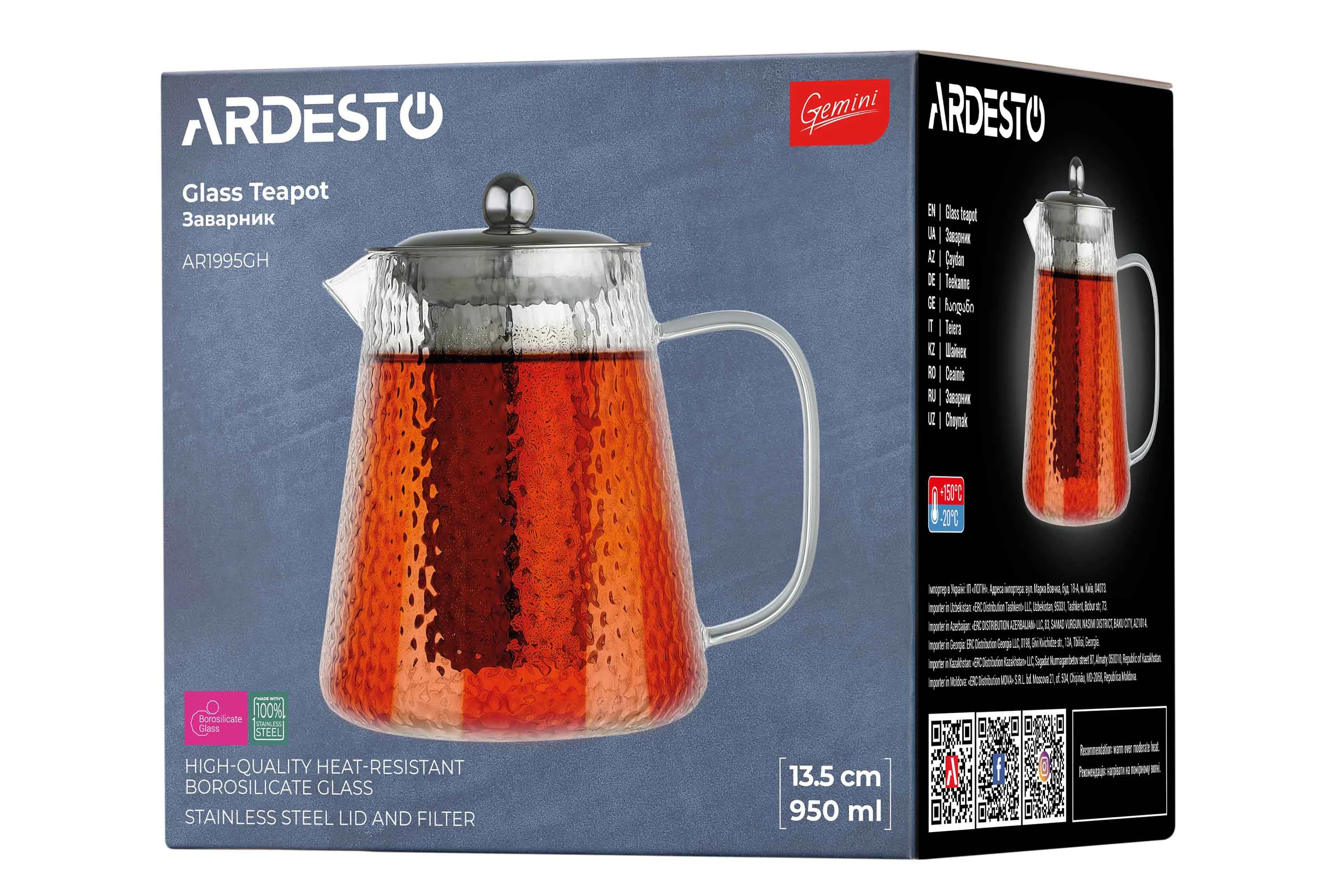 Заварник Ardesto Gemini, 950мл, боросилікатне скло, нержавіюча сталь, прозорий