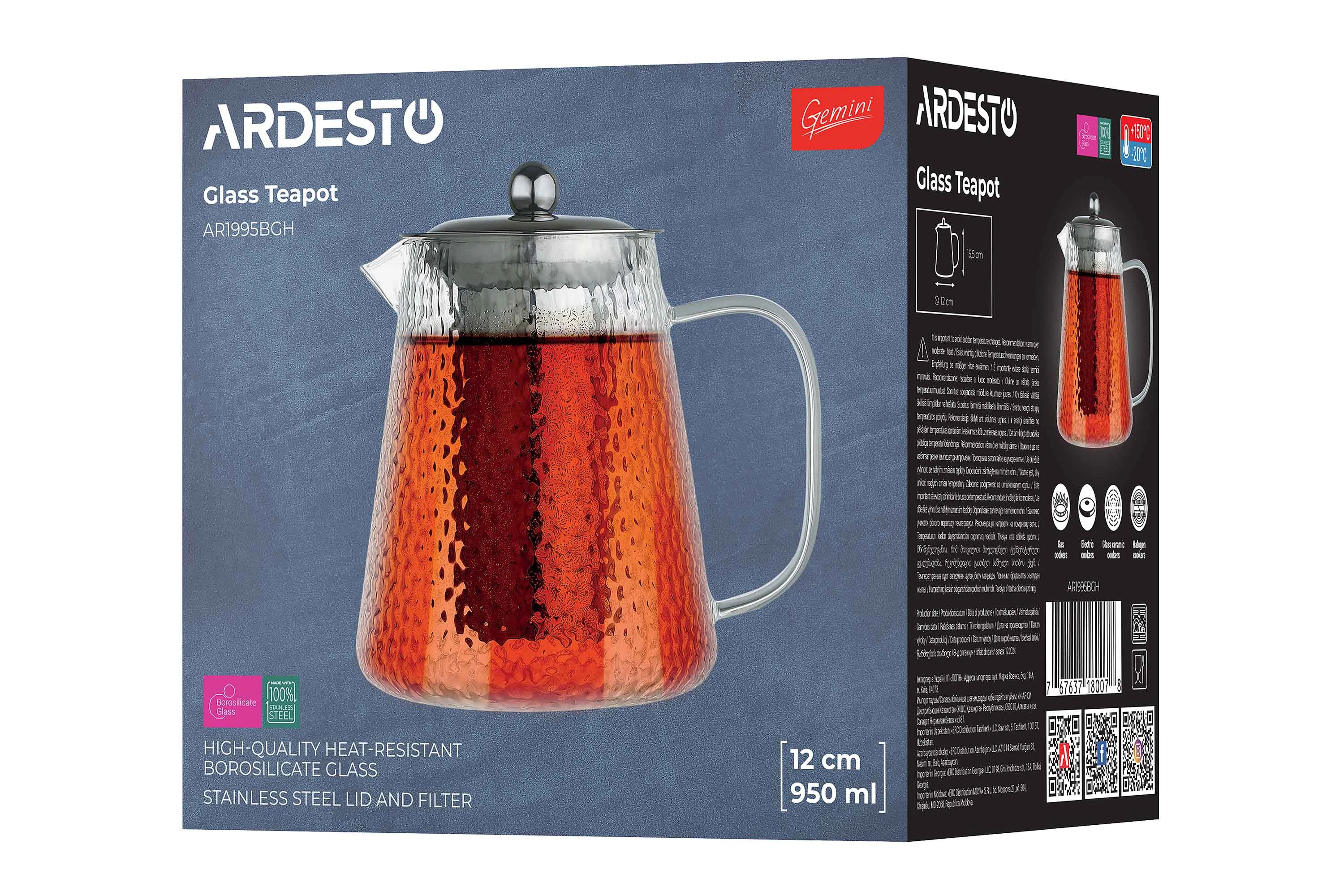 Заварник ARDESTO Gemini 950мл, боросилікатне скло, нержавіюча сталь, прозорий