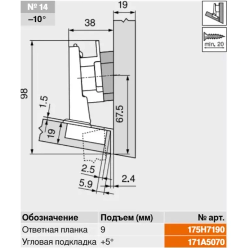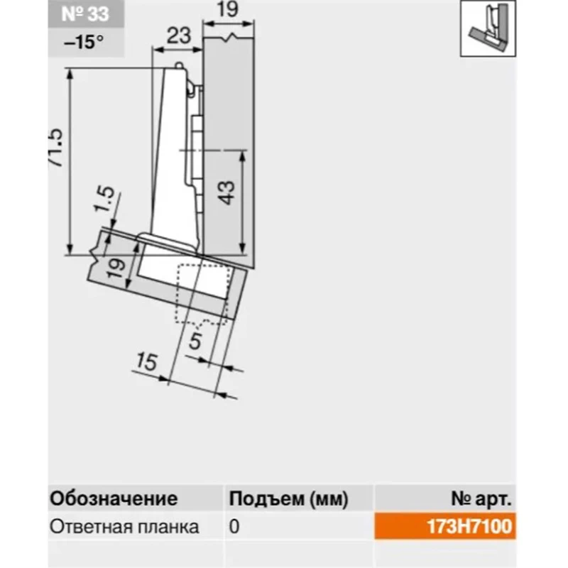 Завіса Blum кутова для ДСП -15⁰ з вбудованим Blumotion 79B3453 MB15- V50 NI Нікель