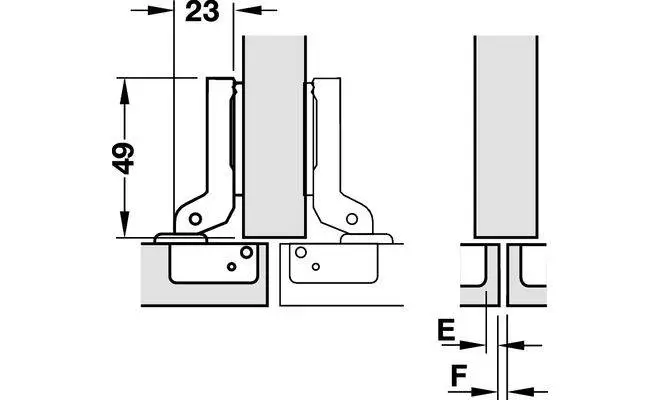- Компактність: Малий діаметр чашки (26 мм) робить цю петлю ідеальною для невеликих дверей та вузьких рам.