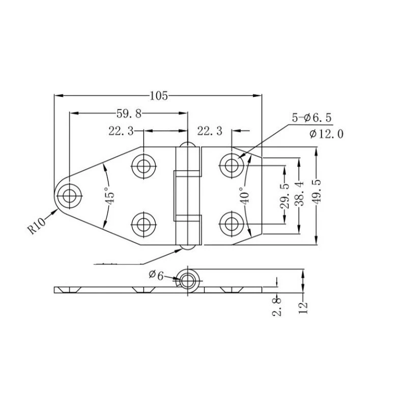 Завіса RZ H49105,SS,0 плоска 49х105 мм Металік