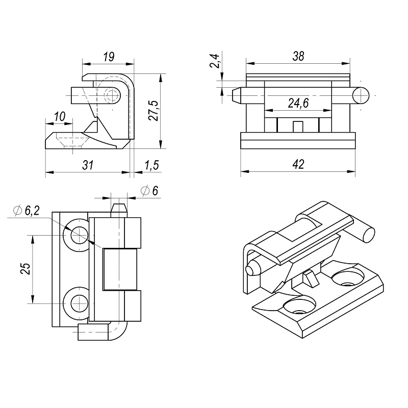 Завіса знімна кутова RZ - це виріб фурнітури для промисловості.